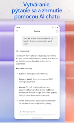 S Microsoft 365 Copilotom máte k dispozícii kompletnú sadu nástrojov pre tvorbu a správu obsahu. Jednoducho vytvárajte a upravujte pútavé obrázky, profesionálne plagáty, bannery, videá a prieskumy pomocou intuitívnych šablón a editorov. Organizujte svoje projekty bez námahy, spájajte nápady, dokumenty a odkazy do Copilot Zápisníkov, ktoré vám umožnia zhrnúť a prepojiť všetky relevantné informácie. Aplikácia tiež zjednodušuje správu súborov: skenujte dokumenty, fotografie a poznámky priamo z mobilného zariadenia, nahrávajte súbory typu Word, Excel alebo PDF z úložiska telefónu a ukladajte si výtvory Copilota priamo k sebe. Všetko pre nájdenie, úpravy a tvorbu obsahu na cestách, s priamym prístupom k Wordu, Excelu, PowerPointu a PDF, je sústredené v jednej výkonnej aplikácii od spoločnosti Microsoft.