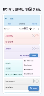 Daily Planner presahuje jednoduché zoznamy – pomôže vám budovať dobré návyky, sledovať pokrok a stanovovať si dosiahnuteľné ciele. Využite inteligentné upozornenia, časové blokovanie pre hlbokú prácu a režimy zobrazenia prispôsobené vašim potrebám. Od prioritizácie úloh až po vytváranie týždenných šablón, všetko je navrhnuté tak, aby ste mali komplexný prehľad a pocit kontroly. Spoznajte cestu k pokojnejšiemu a usporiadanejšiemu životu so ScheduleNow – denný plánovač a zoznam úloh, a objavte silu lepšej organizácie.