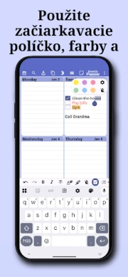 Potrebujete si zaznamenať náhle nápady alebo viesť osobný denník? Aplikácia ponúka samostatný priestor pre vaše poznámky, úplne oddelený od vášho kalendára. Využite ho ako digitálny zápisník na rýchle myšlienky alebo ako miesto pre vaše reflexie. Vďaka bohatým možnostiam formátovania textu si môžete svoje poznámky prispôsobiť pre maximálnu prehľadnosť a vizuálnu príťažlivosť. Vaša produktivita by mala odrážať vašu osobnosť. Preto je aplikácia plne prispôsobiteľná – zmeňte témy, farby a rozloženie tak, aby dokonale vyhovovali vášmu štýlu a potrebám. S automatickou zálohou dát máte istotu, že všetky vaše cenné plány a myšlienky sú vždy v bezpečí.